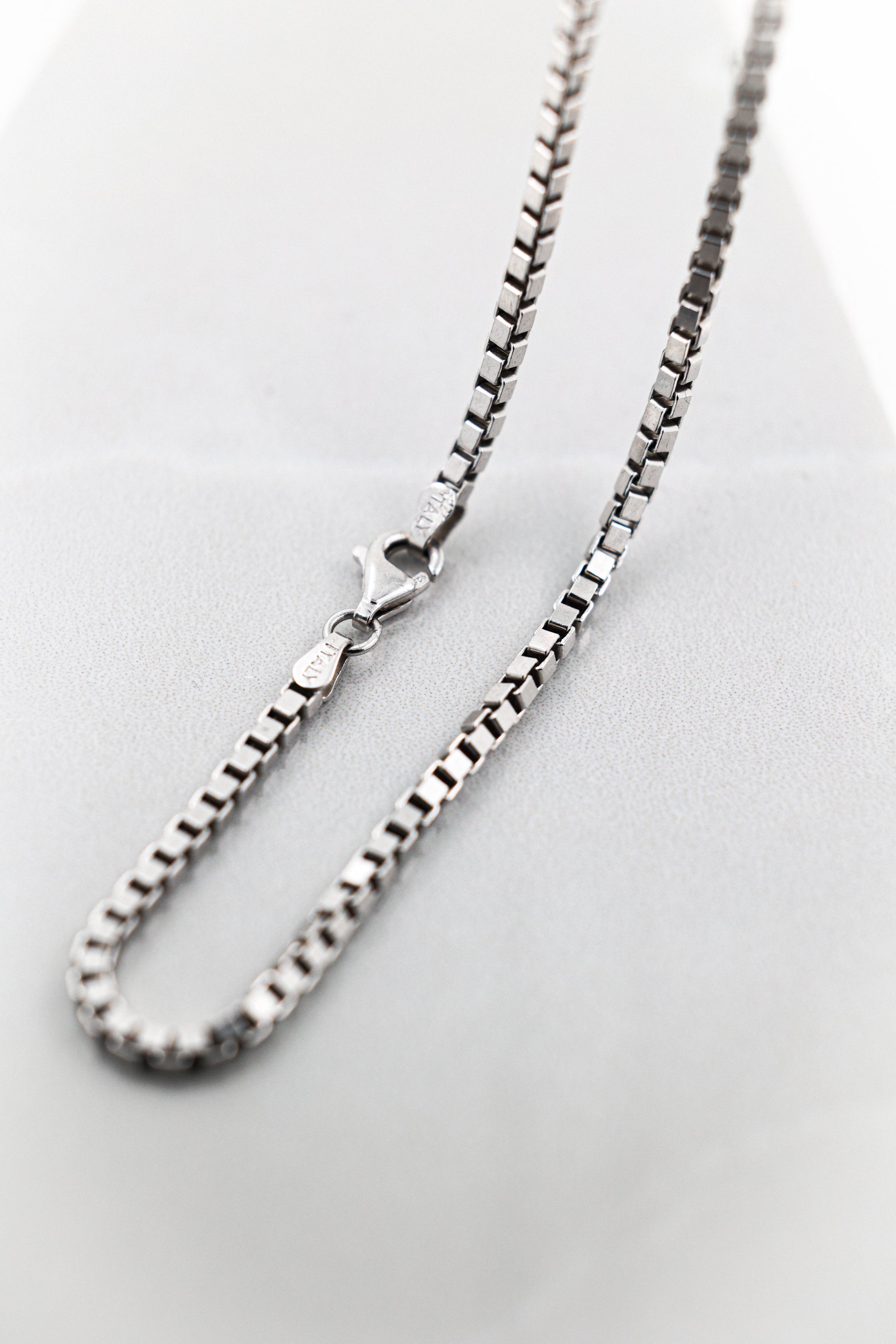 Our 20 inch chains tend to be the most popular length for most men. This length typically falls at a comfortable position on the chest, not too short or too long. But it’s important to consider your own personal preference as well as the diameter of your neck, which will largely determine where the chain lays on your chest. Check out our chain size guide on every product page for a visual reference.